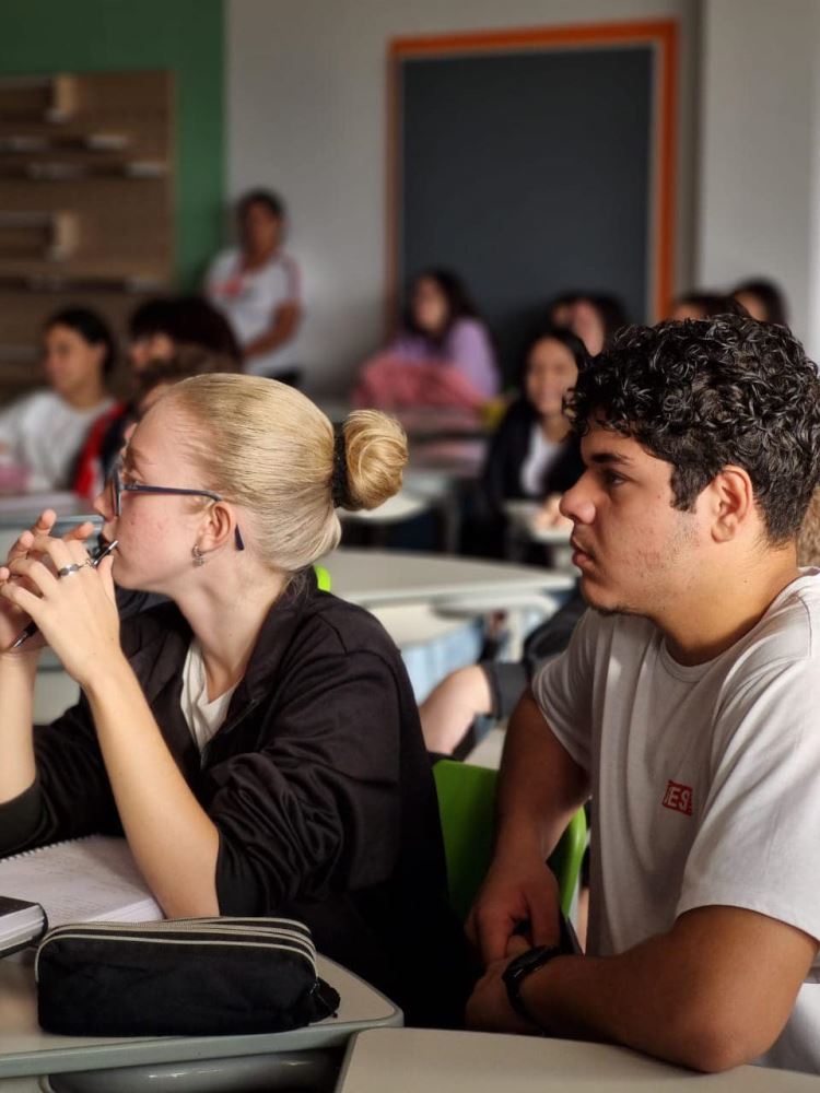 No final do mês de abril, os estudantes do 7º Ano A do Ensino Fundamental e do 2º Ano do Ensino Médio da Escola Sesi de Presidente Epitácio participaram de uma palestra com Peter Mix, engenheiro e especialista em aves do Oeste Paulista. A atividade, que integrou os componentes de Geografia e Língua Inglesa, teve como foco a reflexão sobre sustentabilidade e o papel dos indivíduos na conservação ambiental.