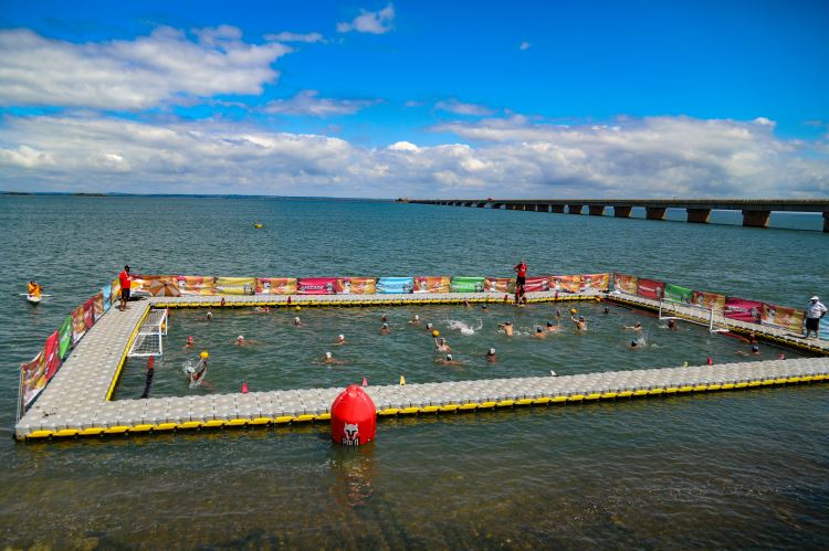 Jogos do Polo Aquático são realizados em piscina montada no Rio Paraná. (Foto: Karim Kahn/SESI-SP)